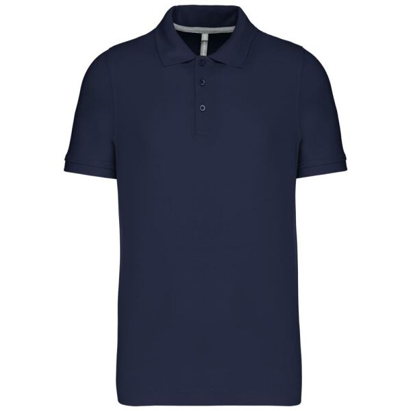100% gekamd katoen - wasbaar op 60°C (Oxford Grey : 90% katoen / 10% viscose - wasbaar op 40°C). Piqué. Kraag in rib. Nektape en zijsplitjes in Oxford Grey voor alle kleuren behalve Oxford Grey daarvan zijn ze Dark Grey. Knooplijst met 3 knopen. Afwerking met dubbele stiksels aan de onderkant. Mouwuiteinden in rib. Gecertificeerd STANDARD 100 by OEKO-TEX® N° CQ 1007/7, IFTH.